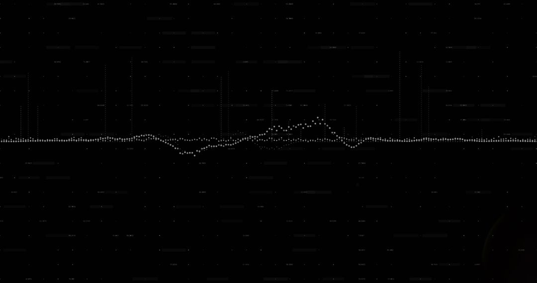 White dots on a digital waveform create a striking abstract visual on a screen background with pixel noise. This representation is well-suited for illustrating concepts related to modern technology and data analysis. Use it for presentations, tech webinars, or websites showcasing cybersecurity and digital solutions.