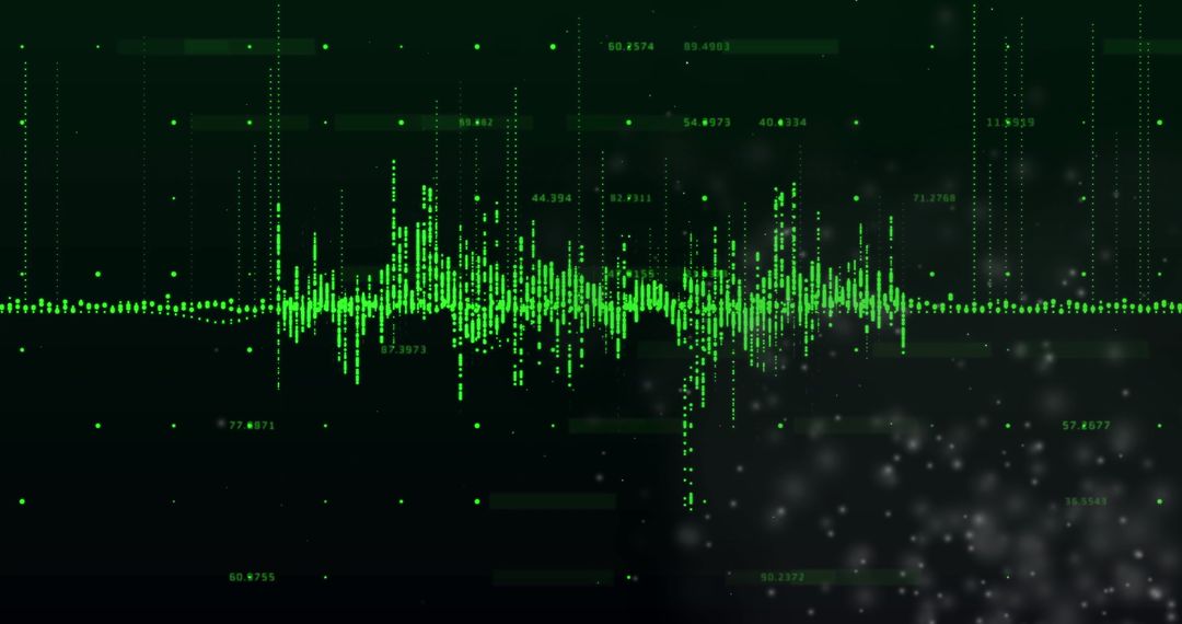 Dynamic visualization of financial data using waveforms and a grid pattern composed of green numbers on a dark backdrop. This design represents data analysis and technology in the finance realm. Ideal for use in presentations, websites, or media related to global finance, digital data processing, and financial technology advancements.