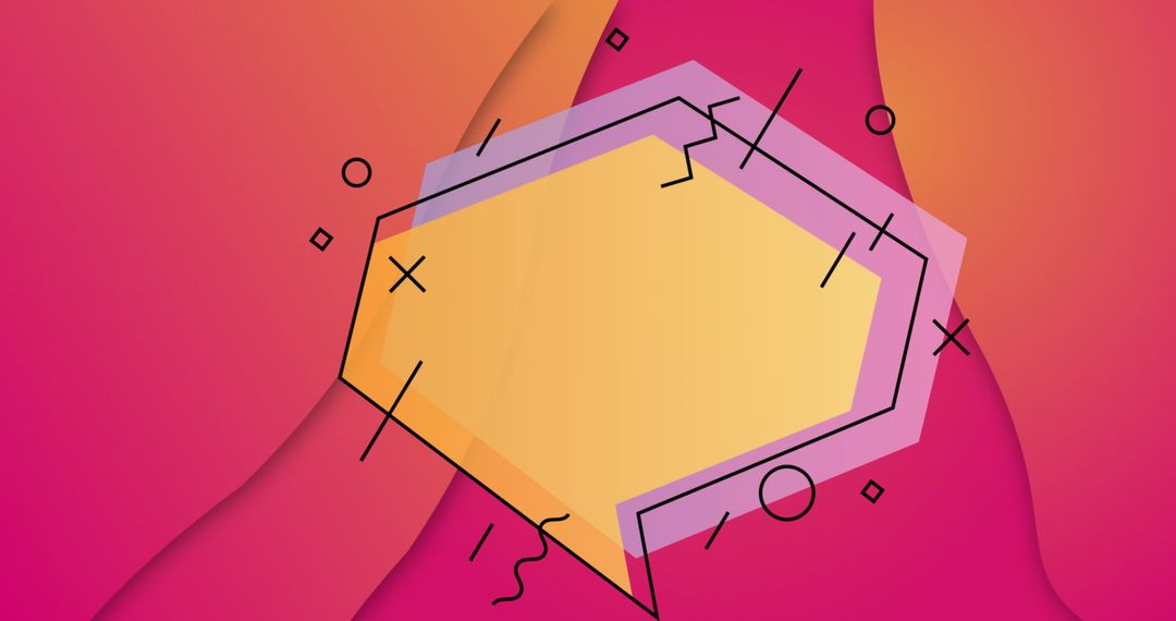 This graphic features a geometrically styled speech bubble set against a vibrant red background with abstract patterns. The colorful design is ideal for graphic design projects, digital communications materials, or creative concept art for branding. Use it to add a modern and artistic touch to backgrounds, posters, or promotional materials.