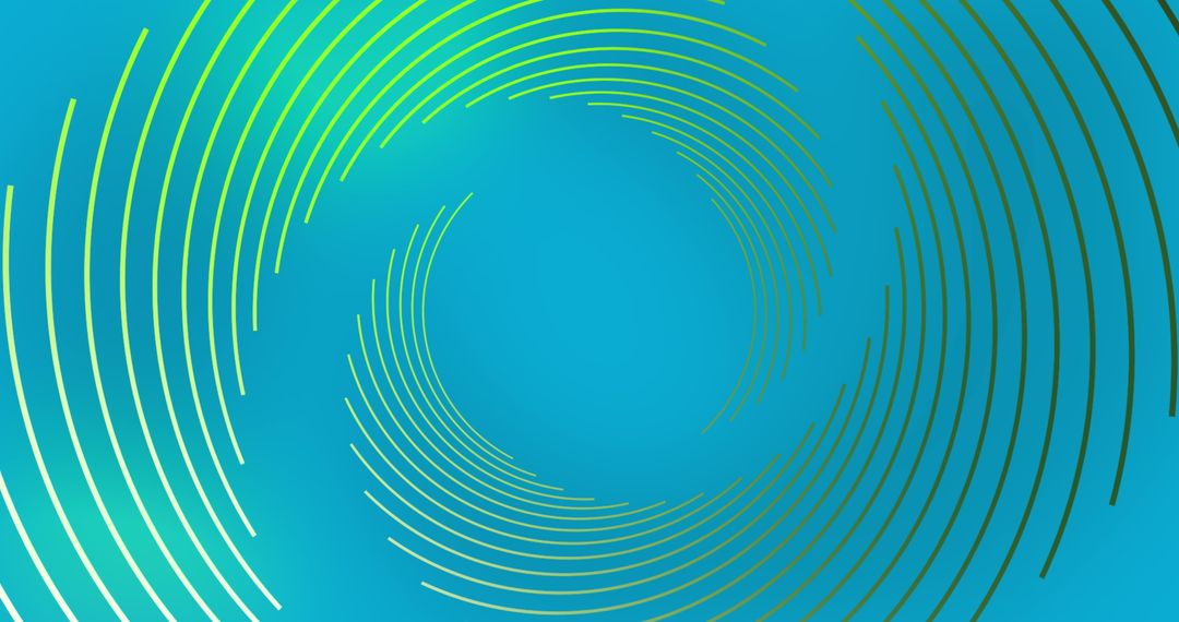 Abstract design featuring green concentric circles moving against a blue background, creating a dynamic and modern feel. Ideal for use in technology presentations, company branding images, innovative web design, or modern print material. The vibrant colors and simple yet engaging pattern make it suitable for artistic graphic applications.
