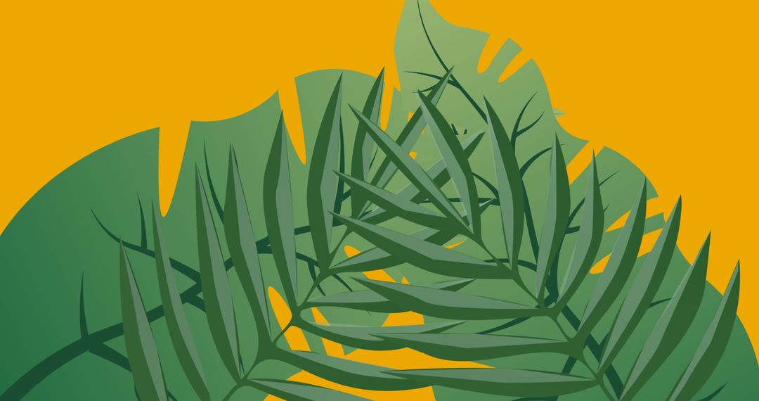 - Abstract Green Leaves On Vibrant Yellow Background
