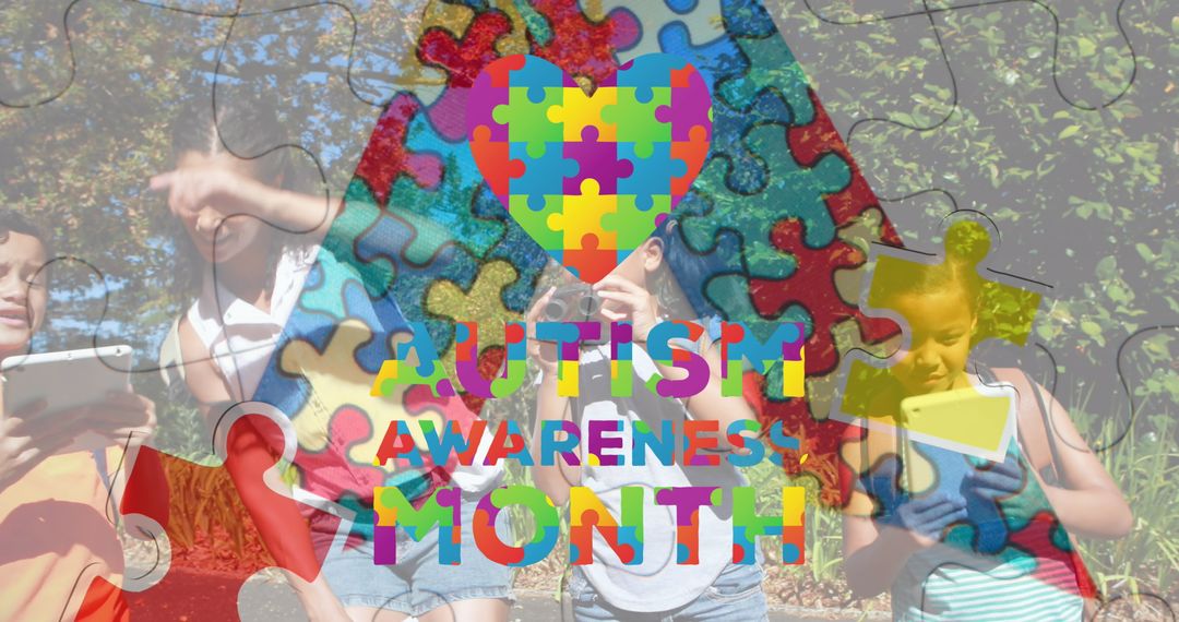 - Autism Awareness Month Colorful Puzzle Pieces with Children