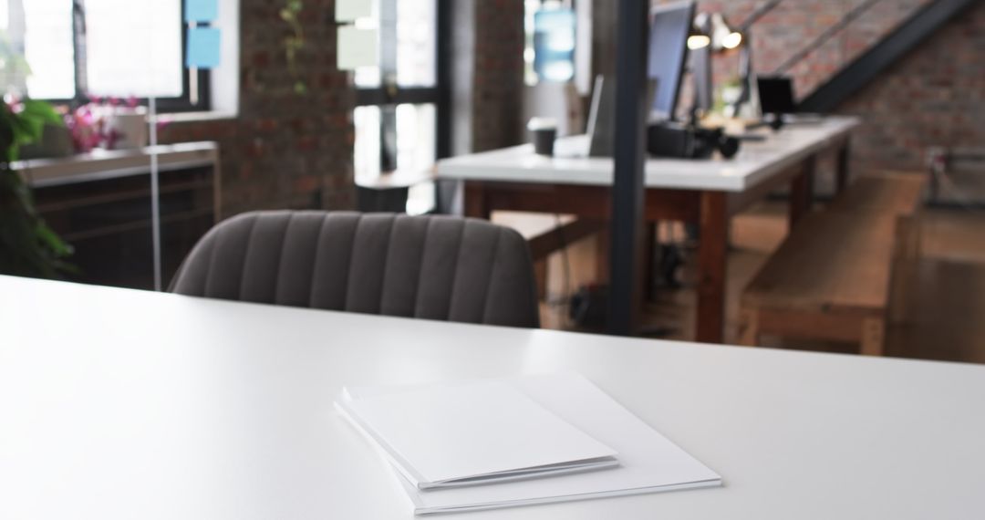 - Blank Papers on Desk in Modern Sunlit Office Environment