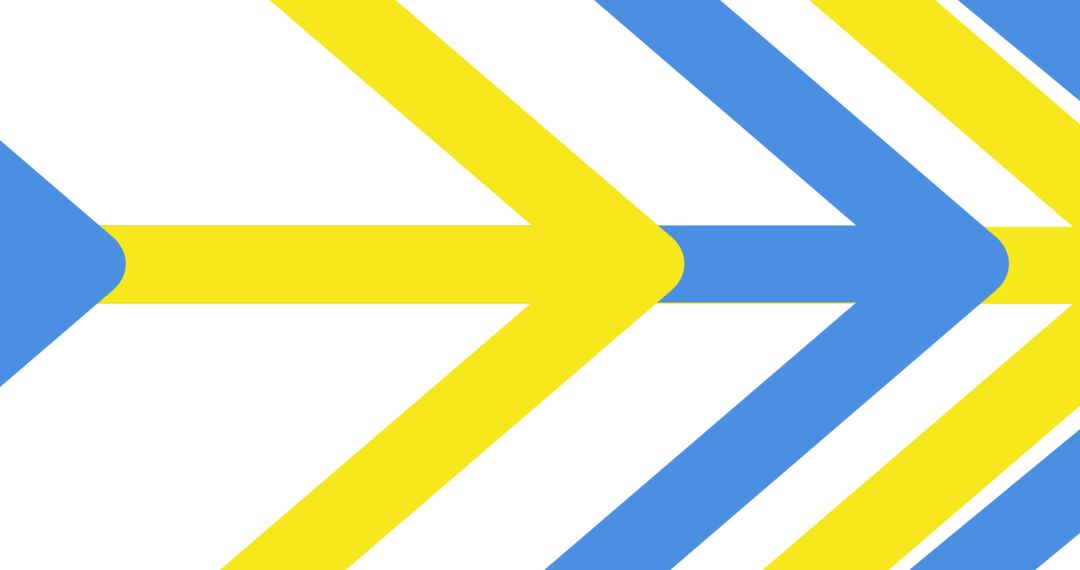 Abstract design features blue and yellow arrows pointing right, symbolizing movement related to Ukraine's political situation. Useful for discussions on political events, change, fluidity in political landscapes, or as a backdrop in presentations related to international relations.
