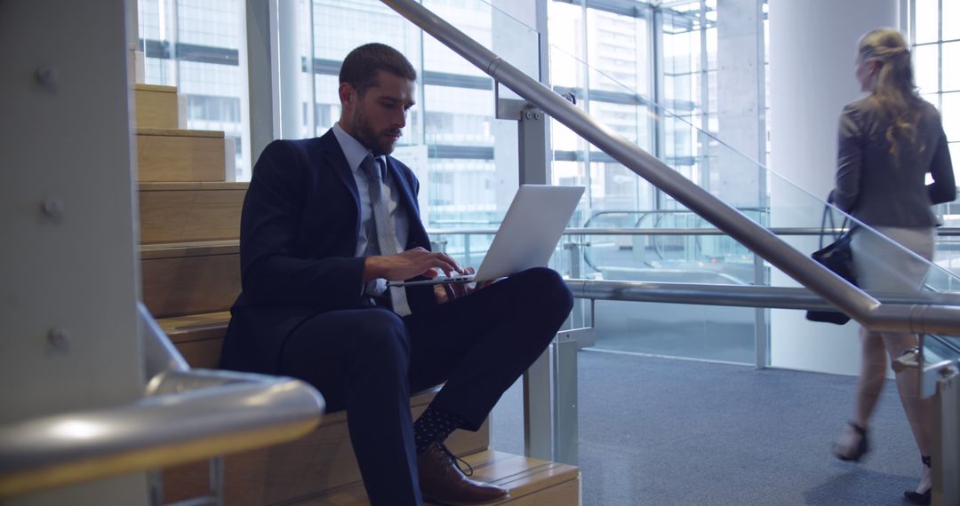 <a target="_blank" href=https://pikwizard.com/photo/businessman-working-on-stairs-in-contemporary-office-environment/5fb30a9e14f7c015ac8ddd06f84cb00e/>PikWizard</a>