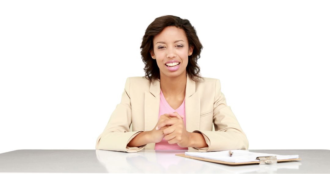 Businesswoman engaging in conversation while smiling, conveying confidence and approachability. Ideal for corporate videos, online training content, employment platforms, career development programs, and promotional materials that require a friendly and professional impression.