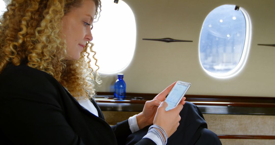 - Businesswoman Using Smartphone on Private Jet Experience