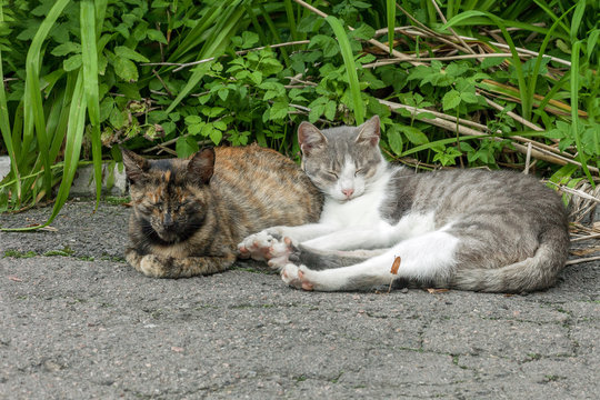 href="https://pikwizard.com/photo/calico-cat-stretching-outdoors-in-garden/43f1a5e7c700806bc252c3a23d04f8a4/"