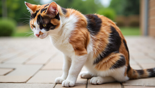 <a target="_blank" href=https://pikwizard.com/photo/calico-cat-stretching-outdoors-in-garden/43f1a5e7c700806bc252c3a23d04f8a4/>PikWizard</a>