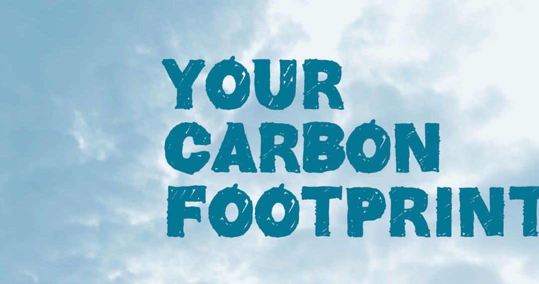 Text emphasizes importance of carbon footprint against backdrop of cloudy sky. Ideal for environmental awareness campaigns, sustainability presentations, green energy discussions, and climate change education resources. Captures theme of environmental consciousness.