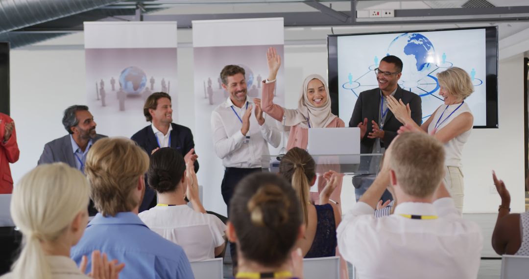 - Celebrating Success at Business Conference with Diverse Team