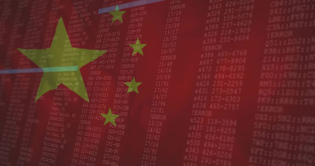 - Chinese Flag Overlay on Digital Code with Errors and Data Columns