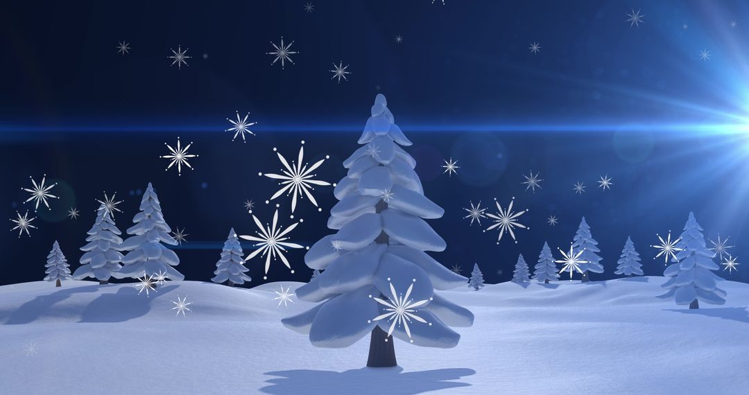 - Christmas Snowflakes Falling Over Snow-Covered Trees at Night