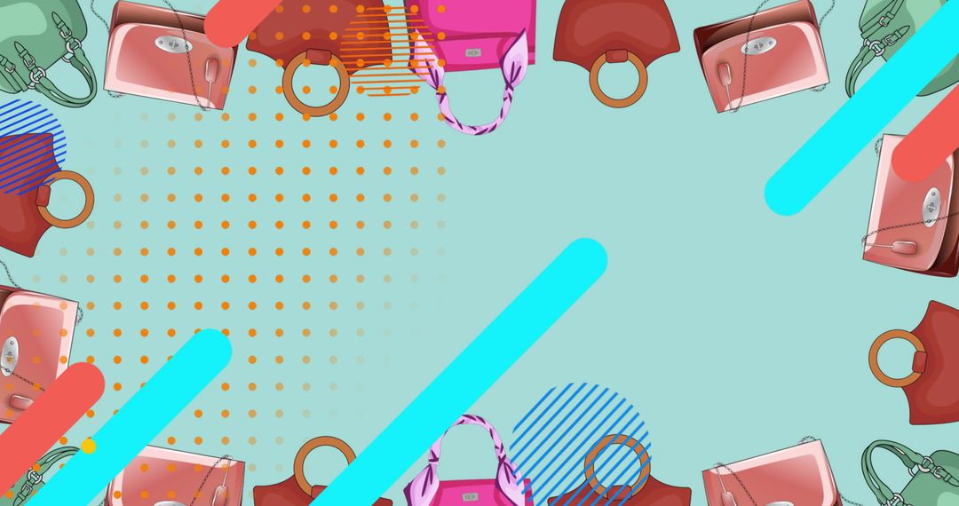 - Colorful Fashion Background with Bags and Abstract Design Elements