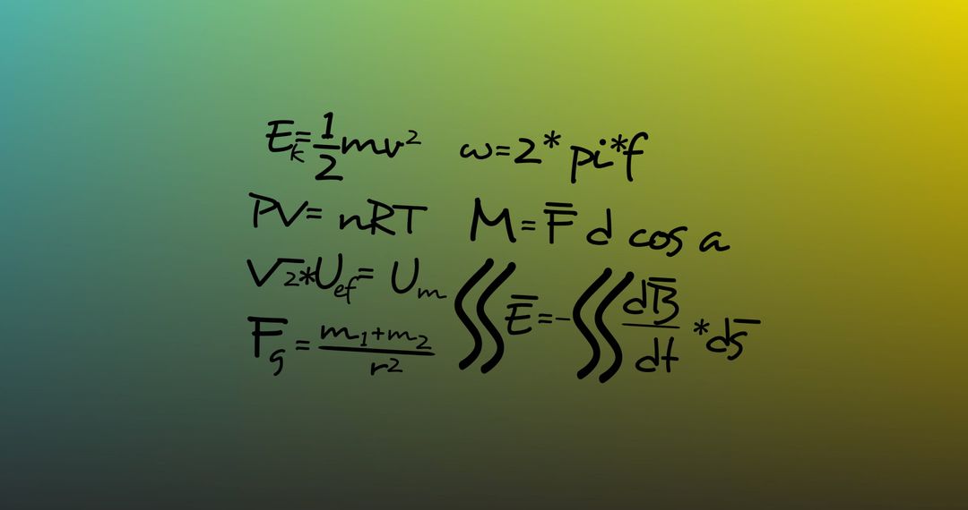 Includes various mathematics and physics equations, set against a color gradient. Ideal for themes involving education, technology, and scientific research. Can be used in academic presentations, technical websites, or digital courses focusing on complex data analysis and computation.