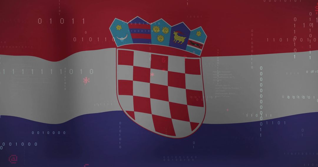 Digital elements and financial data merge with the Croatian flag, symbolizing the integration of global business and technological advancements in Croatia. Useful for contexts related to international business, technological development in finance, or economic analysis.