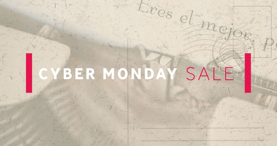 Beige background features Cyber Monday sale advertising in bold typography, overlayed text in Spanish adding an artistic touch; ideal for retailers promoting special offers during Cyber Monday or creating visually engaging content for email campaigns and social media posts.