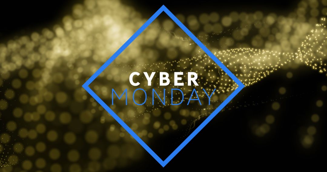 Cyber Monday Shopping Deals Background with Gold Waves Image