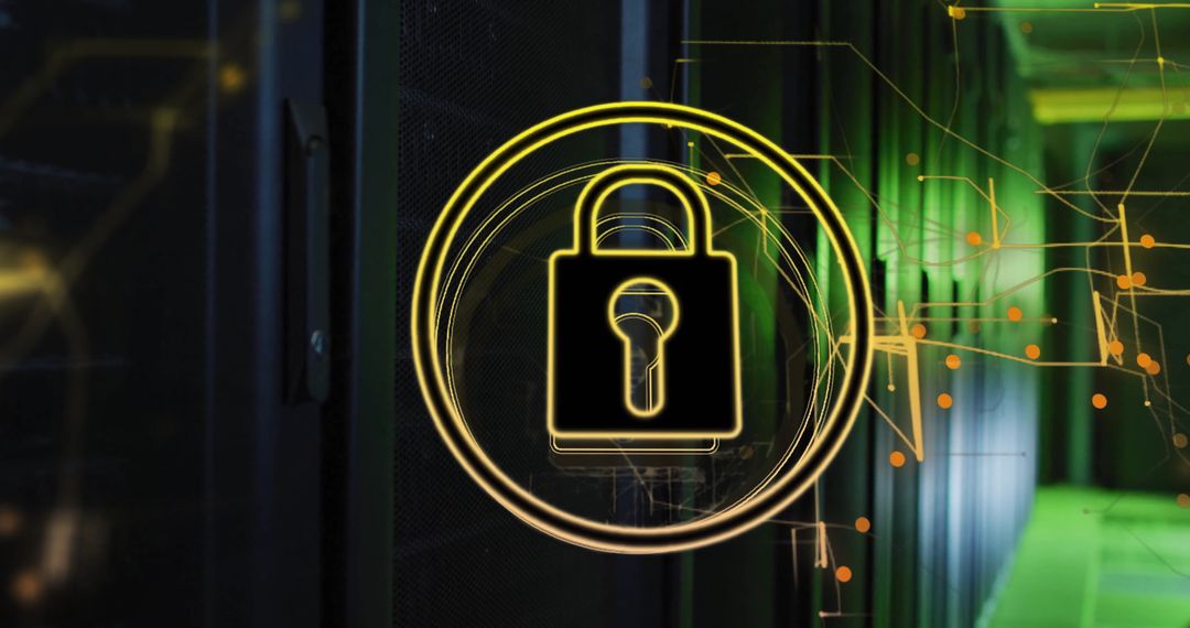 - Cybersecurity Concept Padlock Icon Over Server Room