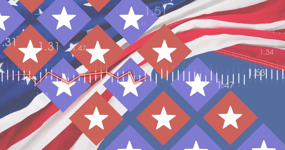 American flag symbolizes strength and nationhood while integrated data lines reflect economic growth, innovation, technological advancement. Ideal for websites or promotions focusing on U.S. Economic analysis, business growth, or financial reports related to American markets. Useful in illustrating concepts related to American entrepreneurship or technological advances set against a patriotic theme.