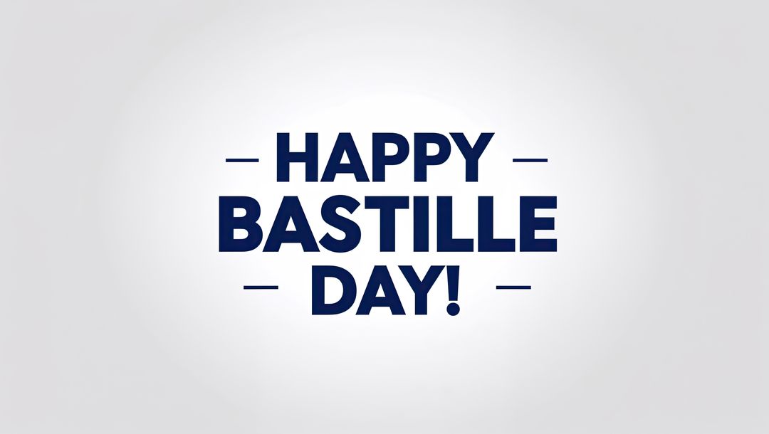 AI Generated Image. Digital typography presents a Bastille Day greeting with a clean design and gradient background. This modern graphic is ideal for festive messages, digital greetings, and social media posts commemorating the national holiday in France. Perfect for educational and cultural presentations or online content related to festivities.