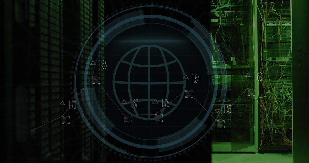 Visual depicting digital data processing with a global connectivity theme. This is fitting for topics on high-tech advancements, network security, or communication technologies.