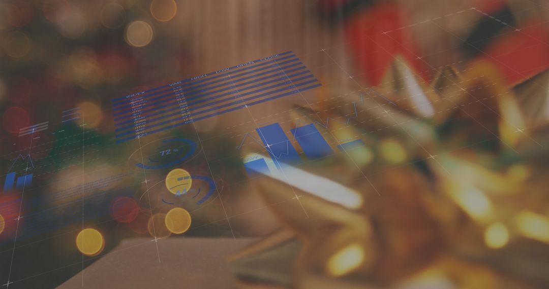 Data and technology overlaying festive holiday decorations capture the blend of work and celebration. Suitable for concepts combining innovation with holiday themes, promotional materials for tech events during the holiday season, or articles on balancing business with festivities.