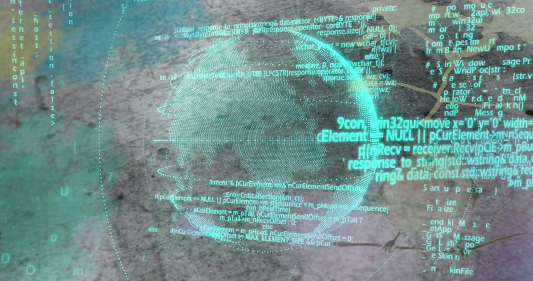 Visual depicts complex digital data surrounding globe, representing concepts like global connectivity, data processing, and cybersecurity. Suitable for illustrating themes of technology, virtual networks, and internet innovation in webinars, technology blogs, and cybersecurity conferences.