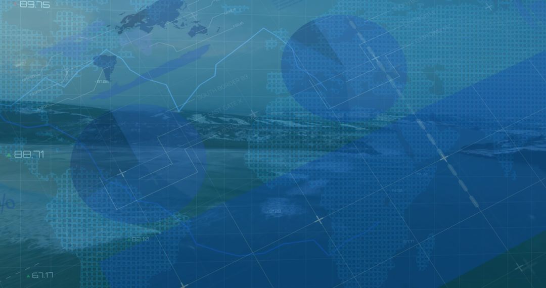 Layered blue global data visualization presenting geospatial gridlines, circular overlays, node markers, numeric readouts, crosshair targets, and faint world map outlines over ocean landscape. Containing abstract HUD elements and chart lines for conveying analytics, finance, or geospatial intelligence. Providing clear space for headline text, data widgets, and logo placement. Ideal for website hero banners, corporate presentations, financial reports, technology blog headers, data analytics dashboards, cybersecurity briefings, and marketing materials. Suited for themes including fintech, logistics, maritime tracking, climate reporting, global trade, and network monitoring.