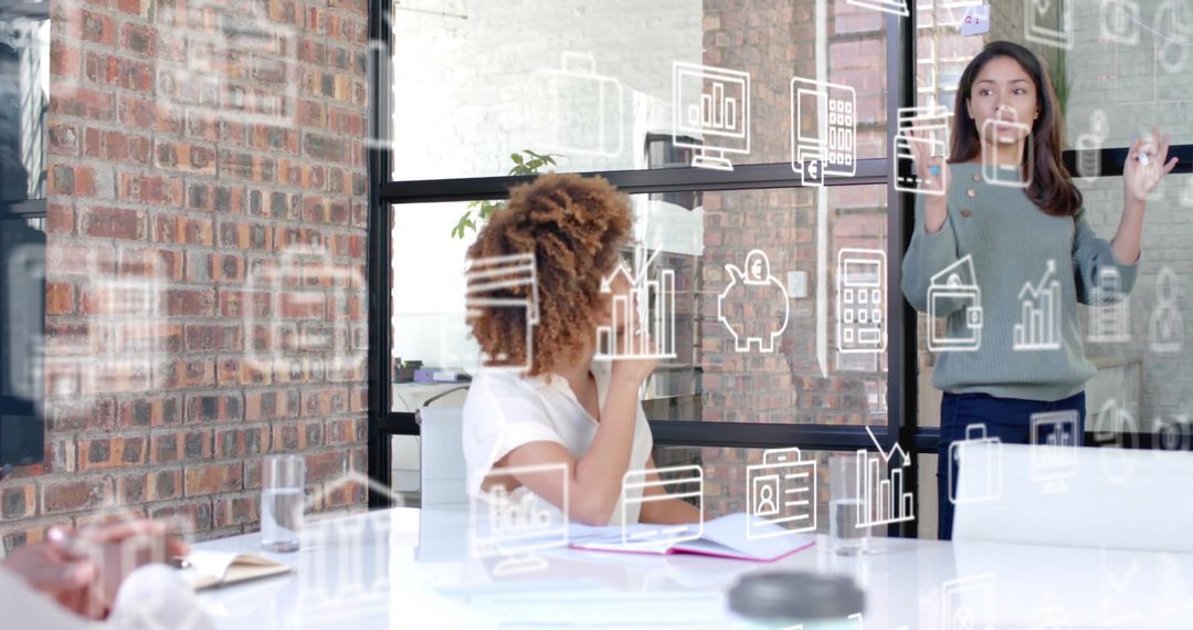 Diverse Business Team Discussing Strategy with Futuristic Digital Icons Image