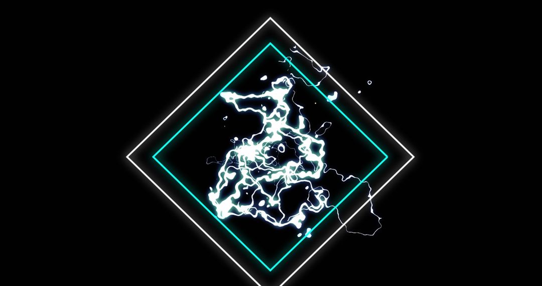 Featuring white geometric frames with an energetic lightning effect, this illustration embodies a sense of digital dynamism and modernity. With bright electric light striking on a deep black background, such an image is perfect for digital media projects, technology-themed presentations, or as a striking visual in graphic design projects.