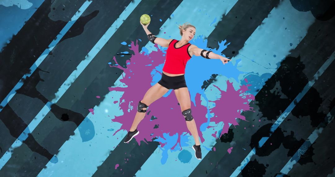 - Dynamic Female Handball Player in Action on Artistic Background