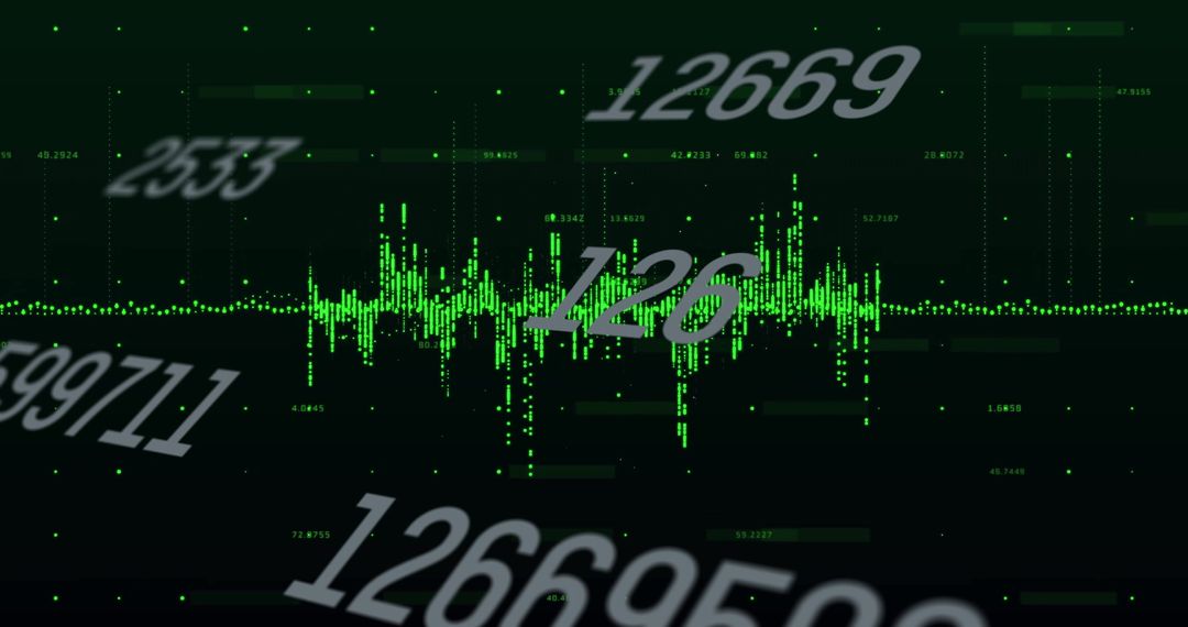 Visual representation of financial data processing with digitally generated graphical numbers floating over a black background, ideal for illustrating technological financial concepts, computing in business sectors, or enhancing presentations focused on data analysis or global finance solutions.