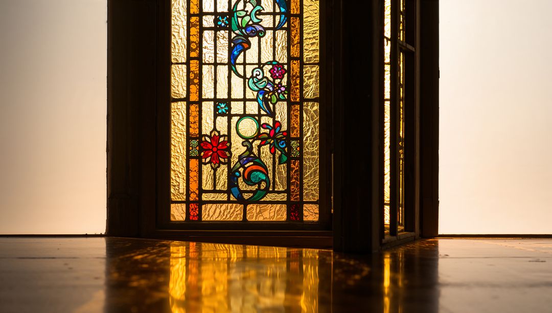 - Elegant Stained-Glass Window Reflecting onto Polished Floor