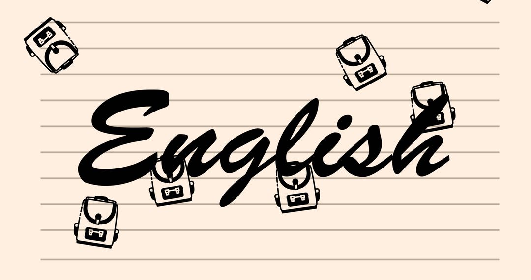 Stylized representation of English language learning, featuring black text on lined paper with floating school-related icons. This visual embodies educational themes, making it perfect for websites, blogs, or marketing materials related to language studies or education.