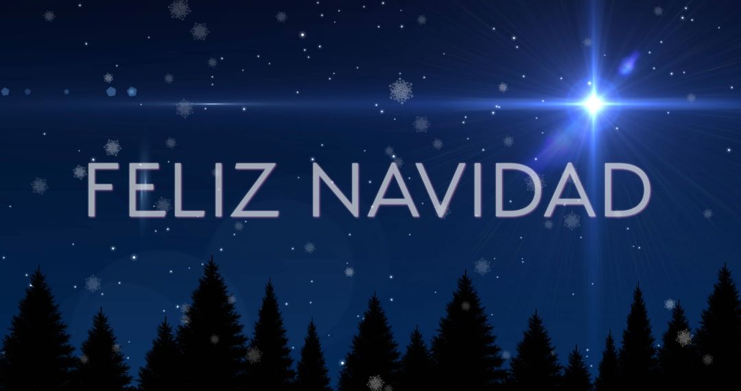Night sky adorned with shimmering stars and snowflakes while 'Feliz Navidad' stands prominently against a delicate winter scene. Perfect for seasonal greeting cards, festive social media posts, or holiday event invites celebrating Christmas spirit.