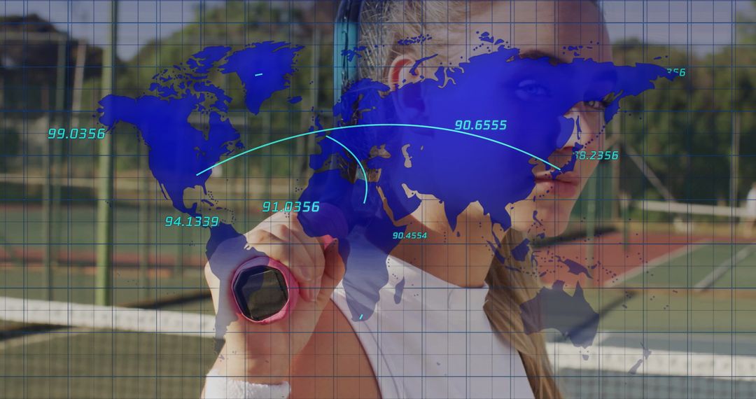 - Female Tennis Player with Digital World Map Overlay