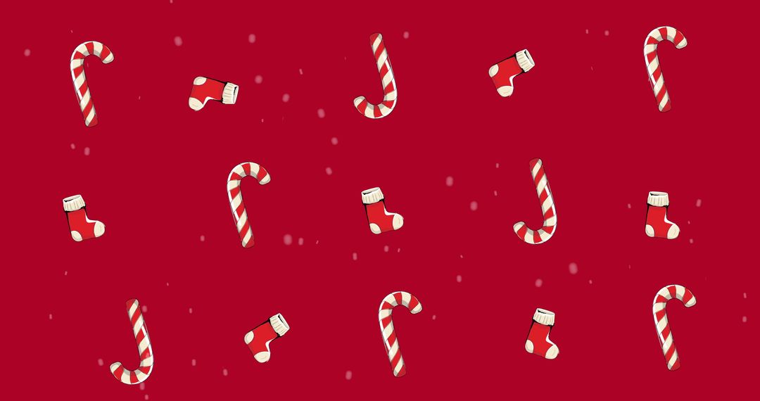 A seamless loop of candy canes and Christmas stockings moving across red background captures spirit of Christmas celebration. Ideal as digital wallpaper during holiday season, using in festive animations. Perfect for Christmas party invites, themed social media backgrounds, online advertisements.