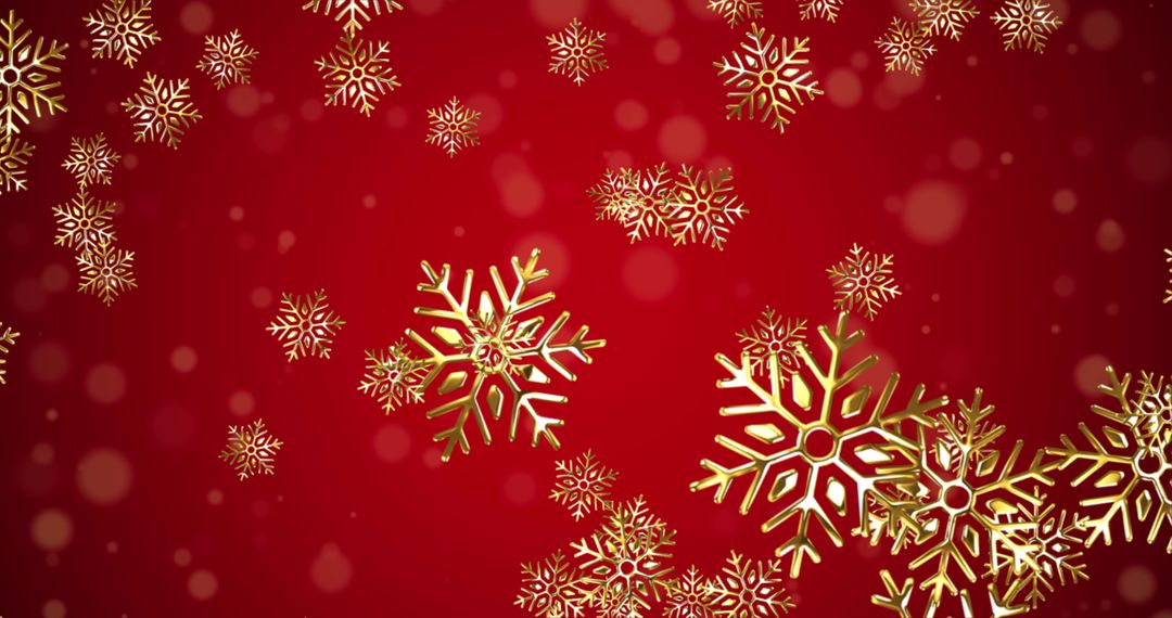 Festive Gold Snowflakes on Vibrant Red Background Image