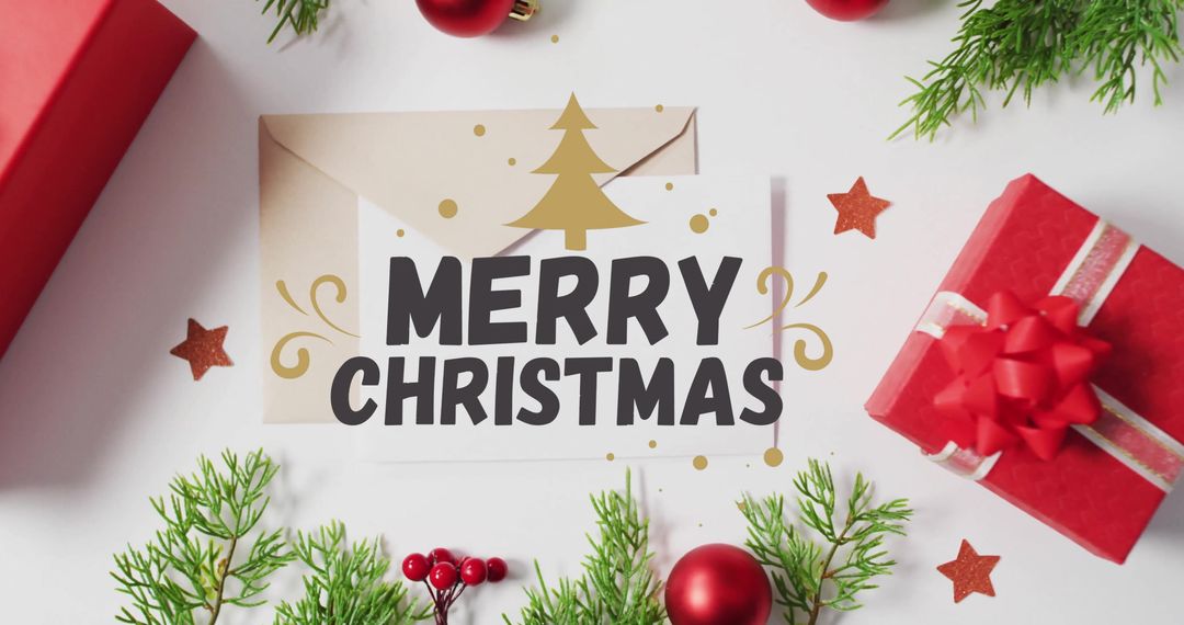 - Festive Merry Christmas Greeting with Gifts and Greenery