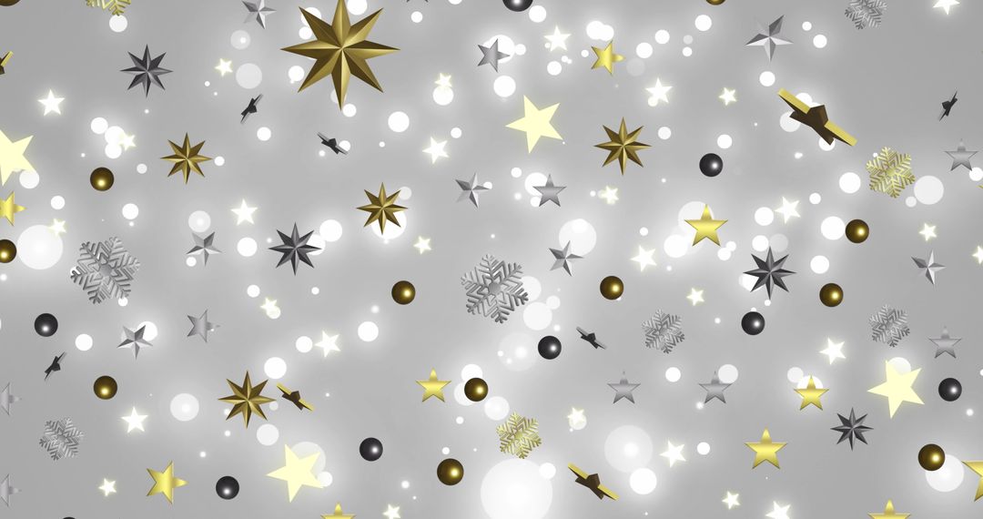 This design features gold and silver stars and snowflakes scattered elegantly on a grey background, capturing the essence of a festive winter celebration. Ideal for holiday-themed greeting cards, gift wrap, digital invitations, or wallpapers to evoke a cheerful and festive atmosphere.