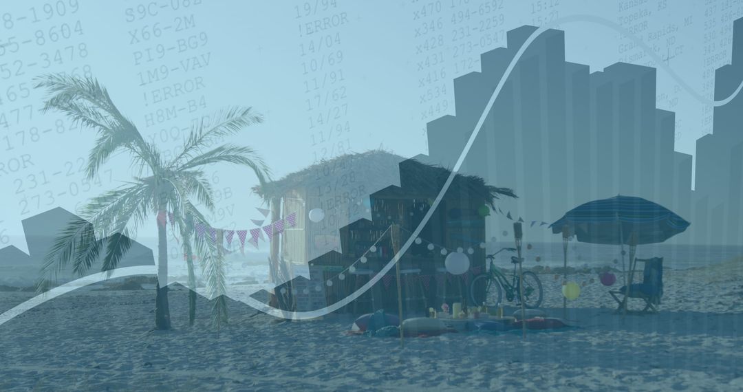 Financial Data Processing Overlaid on the Beach Landscape Image