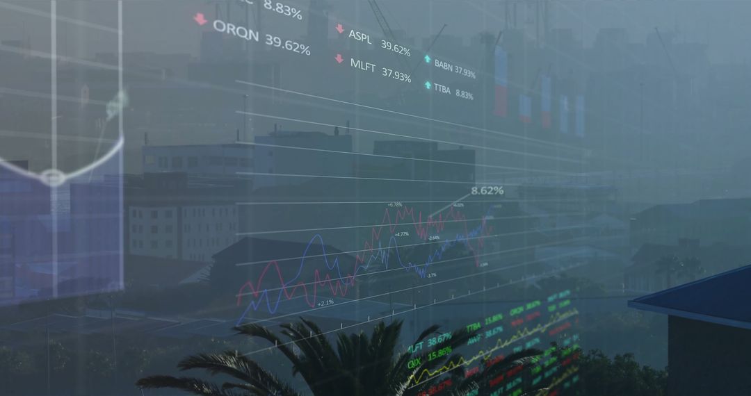- Financial Graphs and Stock Market Data Over Foggy Urban Skyline