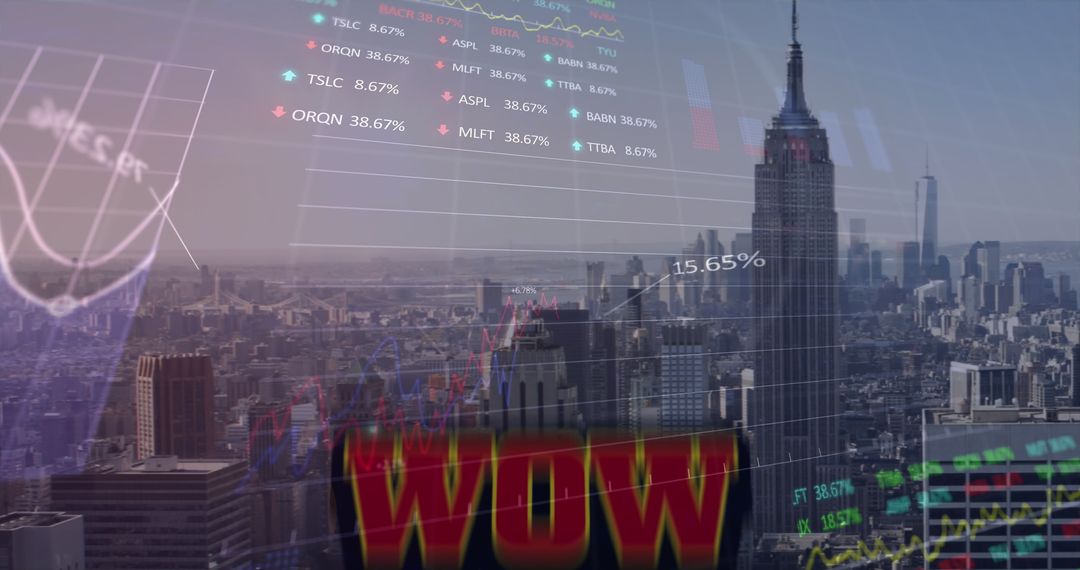 - Financial Graphs Overlaid on New York City Skyline Representing Stock Market Trends