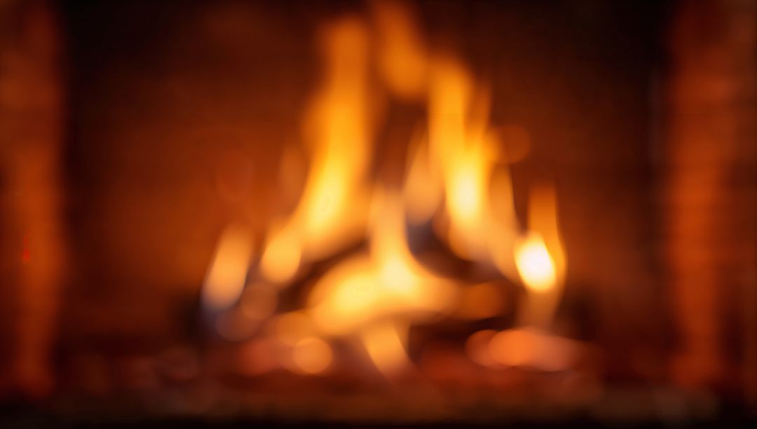 Flickering Fireplace Flames Creating Warm Bokeh and Cozy Amber Hearth Ambience Image