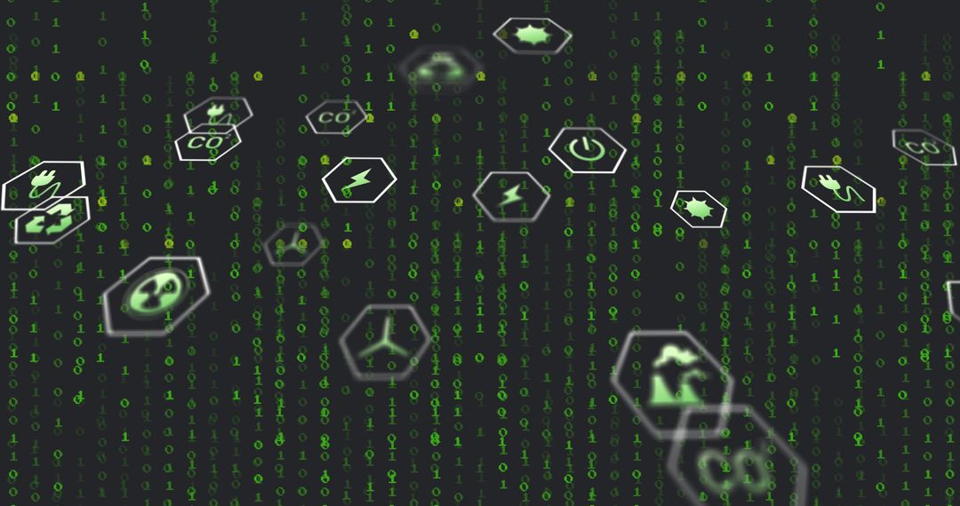 - Floating Hexagonal Eco Icons on Digital Binary Background