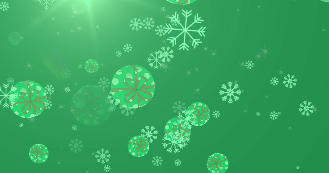- Floating Snowflakes and Baubles on Green Holiday Background