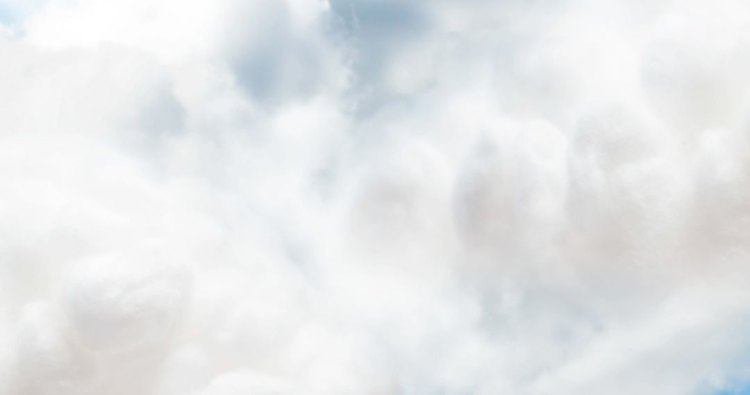 Picture captures sky filled with fluffy white clouds under a bright blue backdrop. Ideal for use in weather-related content, travel brochures, and nature blogs to evoke tranquility. Perfect as background or screensaver emphasizing peace and calmness.