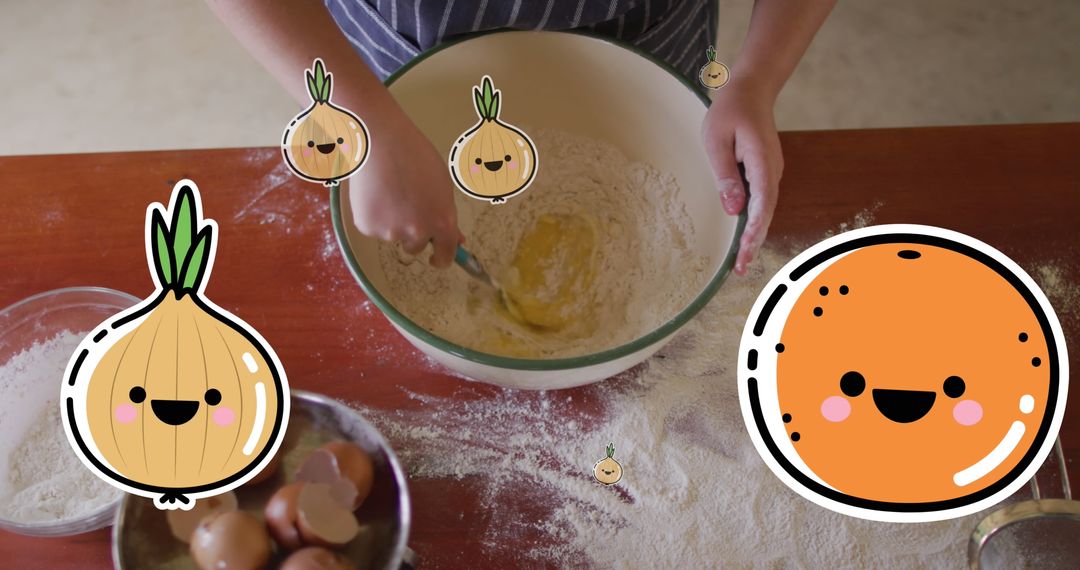 Fun Cooking Concept with Animated Orange and Onion Icons Image