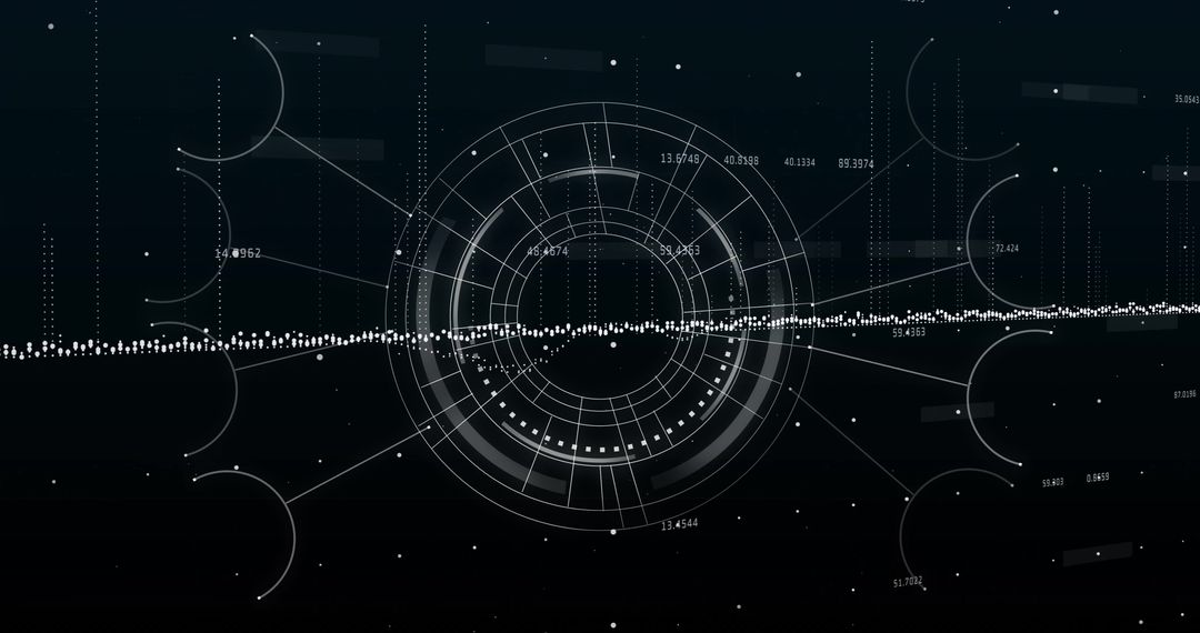 This image showcases an abstract, futuristic digital interface featuring concentric circles with waveform patterns and numeric labels. The design is ideal for backgrounds in technology presentations, websites, and articles focusing on data analytics or digital innovation. Its clear, modern aesthetic makes it suitable for conveying concepts of advanced computing, machine learning, and artificial intelligence.